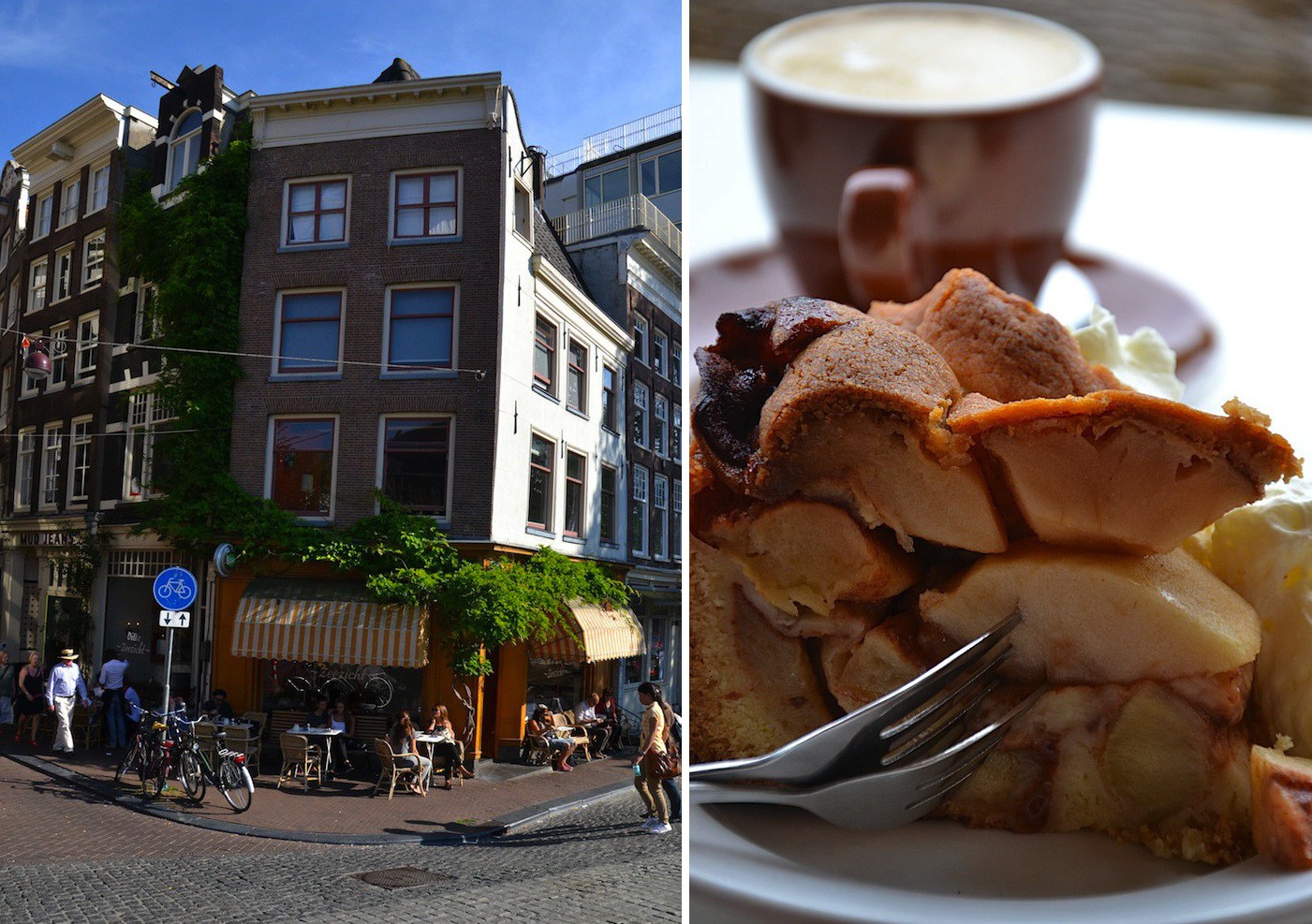 Ganz zufällig sind wir an diesem Café vorbeispaziert und blieben sofort für ein zweites Frühstück dort. Das Café liegt direkt an der Singel und von der Holzbank draußen kann man vorbeigehende Menschen beobachten – Ihr müsst wissen, das ist eine unserer Lieblingsbeschäftigungen. Der Cappuccino ist unglaublich gut!