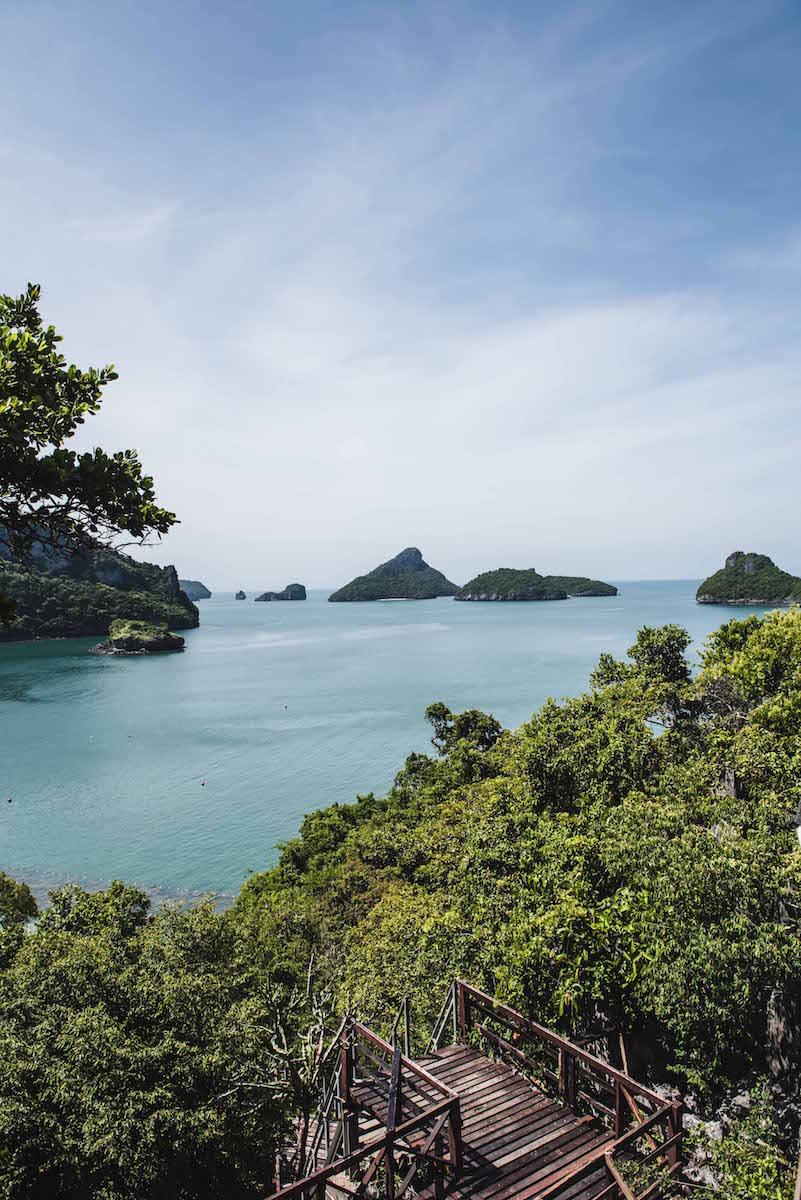 Falls du sportlich motiviert bist, dann empfehlen wir dir, die Wanderung zum Aussichtspunkt in Angriff zu nehmen. Nach dem schweißtreibenden Aufstieg (ca. 20 bis 30 Minuten) wirst du mit einem sagenhaften Ausblick auf die Inseln des Ang Thong Marine Nationalparks belohnt.